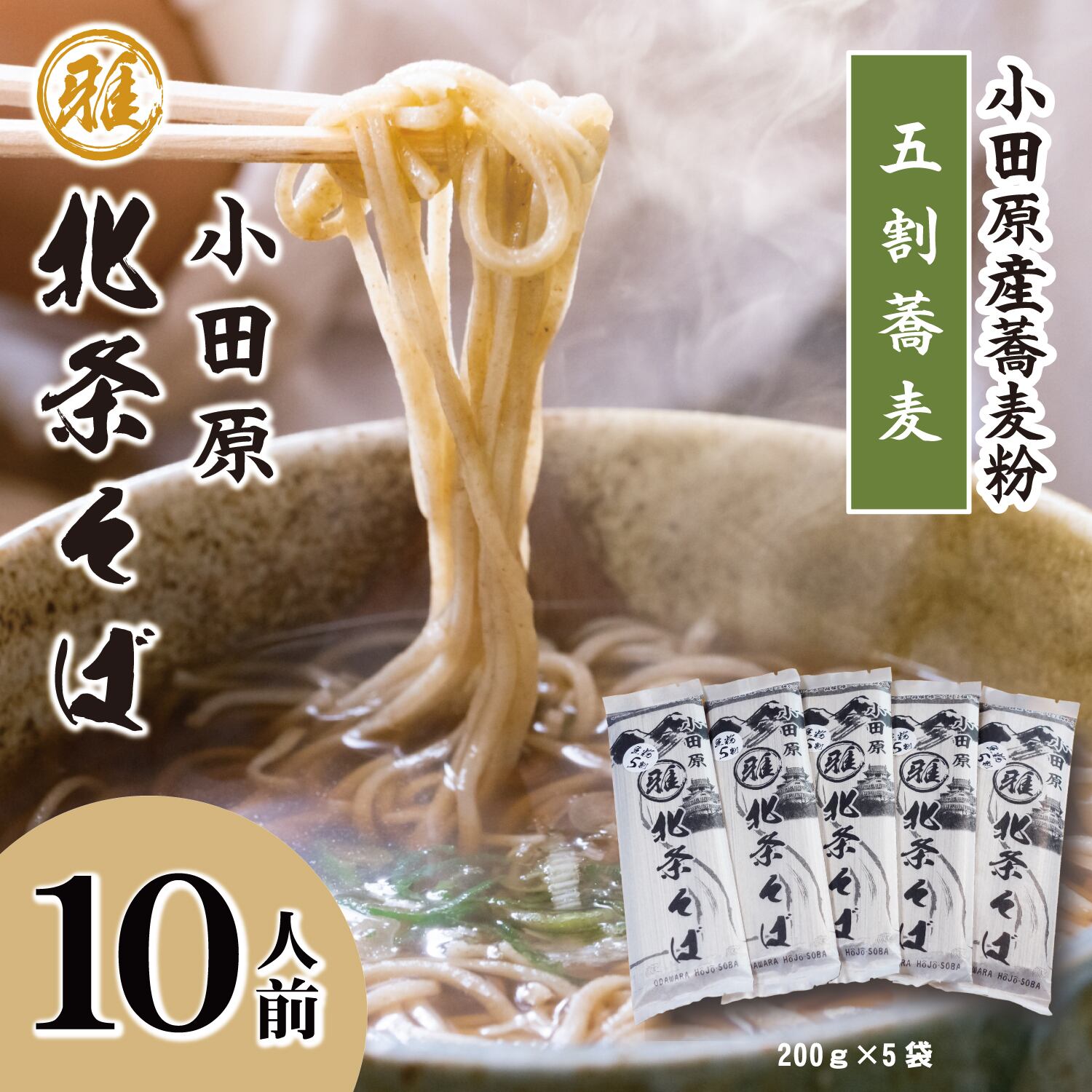 このセットには、5割そばが5パック含まれており、合計で10人前のお蕎麦をお楽しみいただけます。