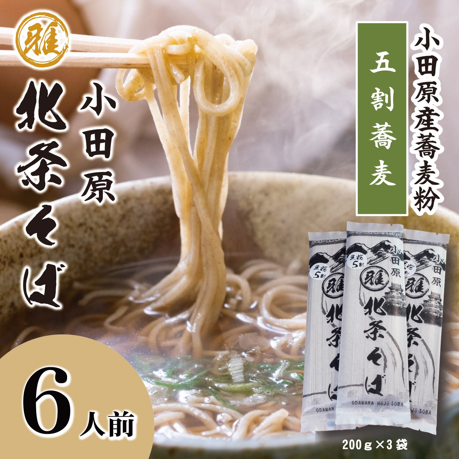 このセットには、5割そばが3パック含まれており、合計で6人前のお蕎麦をお楽しみいただけます。