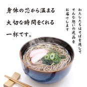 相模湾を一望する小田原市根府川の「小田原・箱根地域唯一のそば畑」及び神奈川西部の自家農園で年間3回栽培収穫しているそば、並びに国内産そばを使用しています。四季を通じて新そばの食感を味わえます。